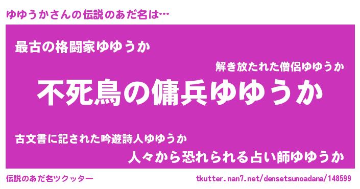| 意味不明あだ名 | 『住所不定無職ゆゆうか(65歳)』 |