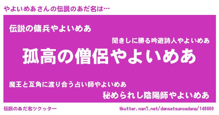 | ポケモン風あだ名 | 『ヒヤヨイメア』『ヤヨチュウ』 |