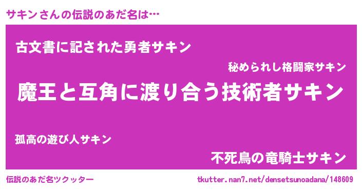 | ヒーロー風カッコイイあだ名 | 『仮面サキダー』『天空の使者サキン』 |