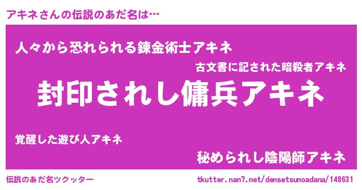 | 胡散臭い通販商品みたいなあだ名 | 『億万長者になれる水晶球…その名も「アキネ」』 |