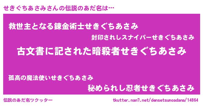 | 意味不明あだ名 | 『永久保存せきぐちあさみ』 |