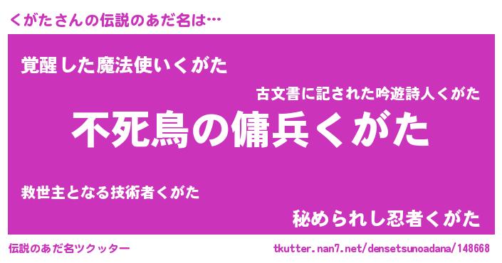 | ヒーロー風カッコイイあだ名 | 『サイバー戦士クガタ』『スーパークガタ』 |