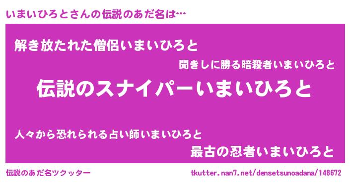 | ヒーロー風カッコイイあだ名 | 『仮面イマダー』『スーパーイマイヒロト』 |