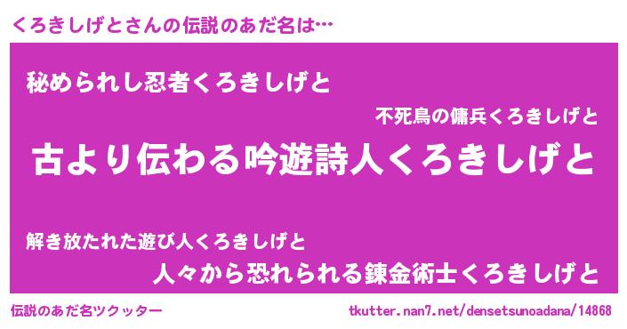 | ヘコむあだ名 | 『くろきしげと(小並感)』『つくし』 |