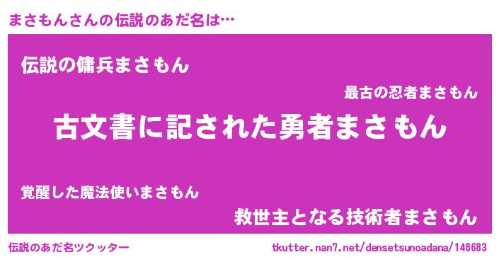 | 意味不明あだ名 | 『永久保存まさもん』『自称まさもん』 |