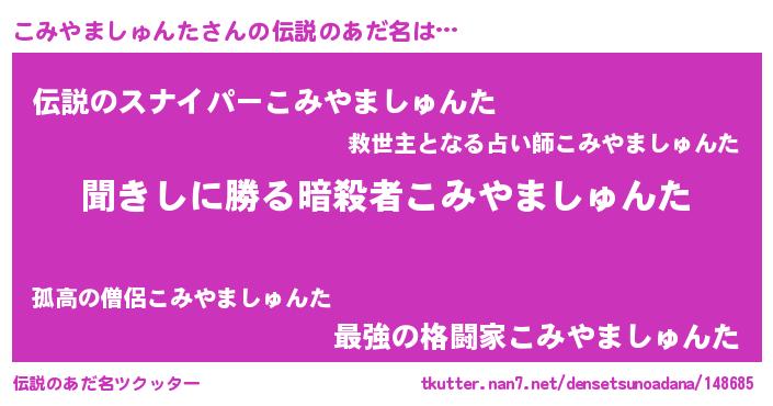 | ヘコむあだ名 | 『こみやましゅんた(苦笑)』『こみもー』 |