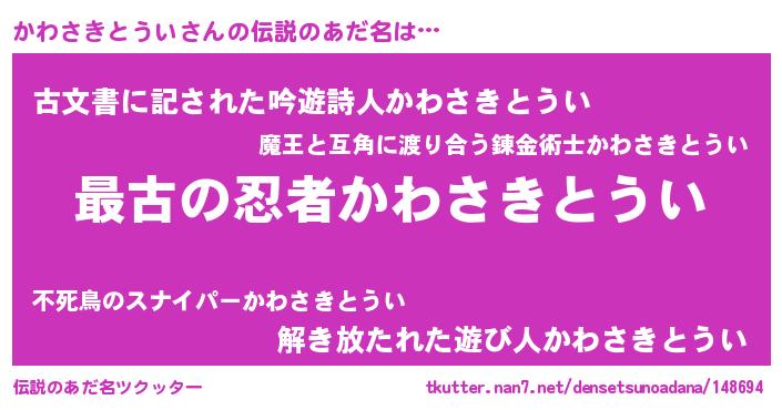 | ファンタジー風あだ名 | 『エターナルカワサキトウイー』 |