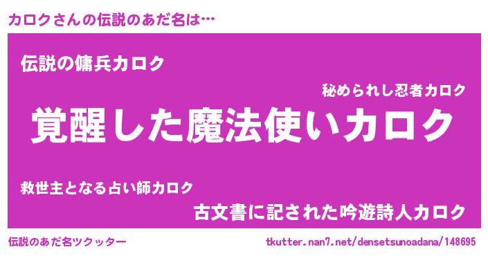| ヒーロー風カッコイイあだ名 | 『炎刃騎士カロ』『ウルトラ戦士カロク』 |