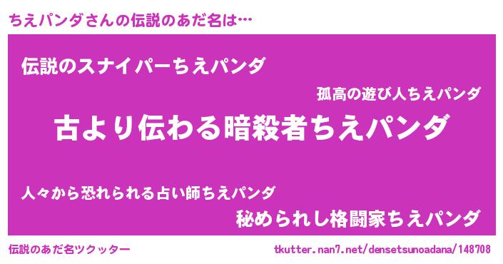 | 意味不明あだ名 | 『永久保存ちえパンダ』『自称ちえパンダ』 |