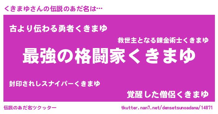 | ファンタジー風あだ名 | 『エターナルクキマユー』『ゼクキトゥ』 |