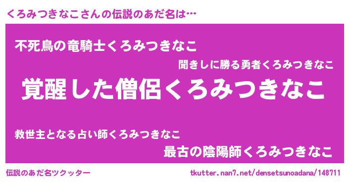 | 男性向けラノベタイトル風あだ名 | 『くろみつきなこに滅ぼされるだけの簡単なお仕事です』 |