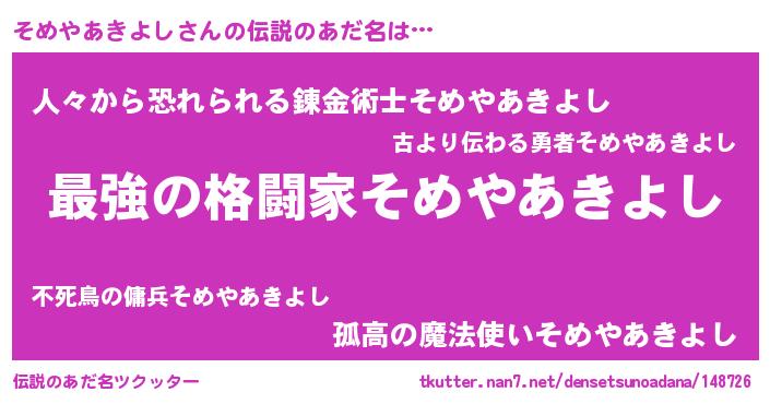 | 意味不明あだ名 | 『住所不定無職そめやあきよし(4歳)』 |