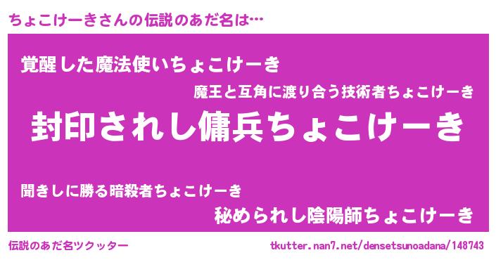 | ポケモン風あだ名 | 『チョチュウ』『ヒチョコケーキ』 |