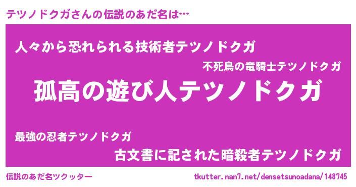 | ポケモン風あだ名 | 『テーツイ』『ヒテツノドクガ』 |
