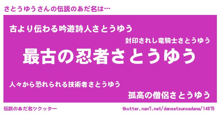 | ヒーロー風カッコイイあだ名 | 『仮面サトダー』『ネオサトウユウ』 |
