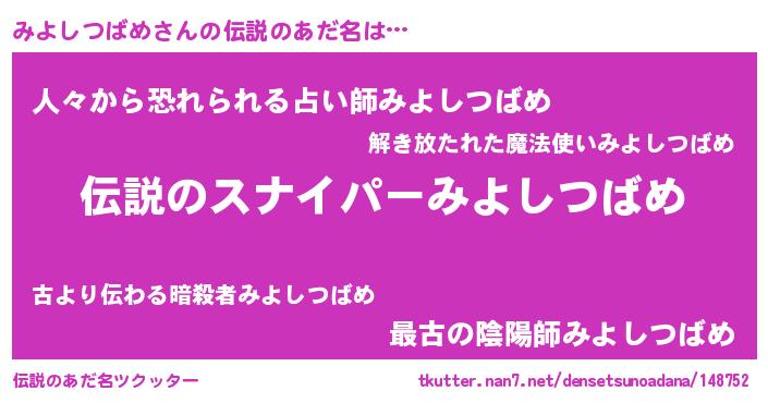 | 意味不明あだ名 | 『自称みよしつばめ』 |
