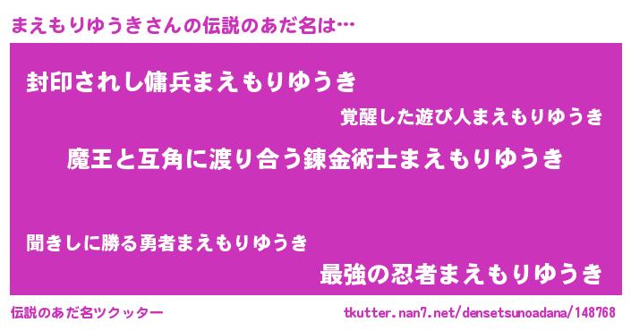 | 肩書あだ名 | 『まえもりゆうき上級大将』 |