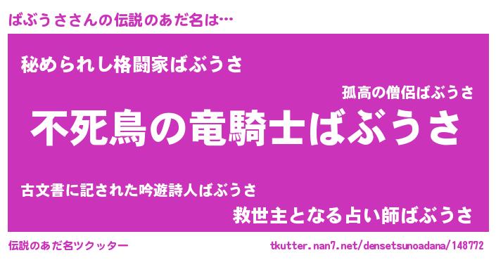 | ヒーロー風カッコイイあだ名 | 『ウルトラ戦士バブウサ』『仮面バブダー』 |