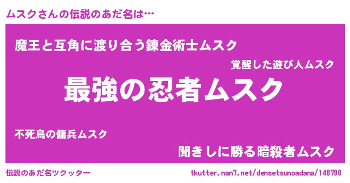 | ポケモン風あだ名 | 『ムスクダネ』『ムックウザ』 |