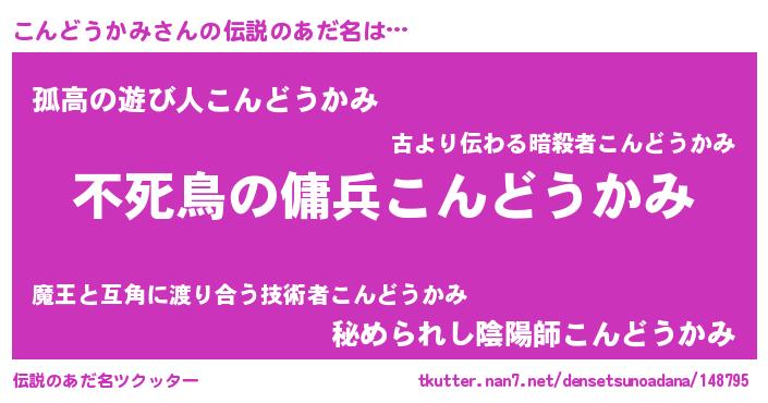 | 男性向けラノベタイトル風あだ名 | 『コンドウカミアートオンライン』 |