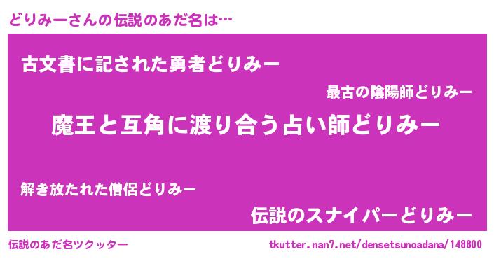 | ヘコむあだ名 | 『どりみー(苦笑)』『どりもー』 |