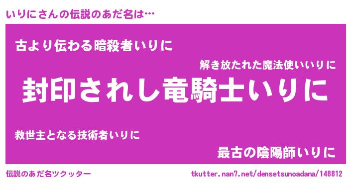| 意味不明あだ名 | 『住所不定無職いりに(4歳)』 |