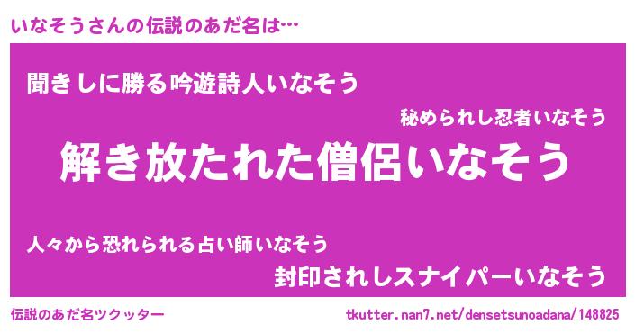 | ヒーロー風カッコイイあだ名 | 『ウルトラ戦士イナソウ』『仮面イナダー』 |