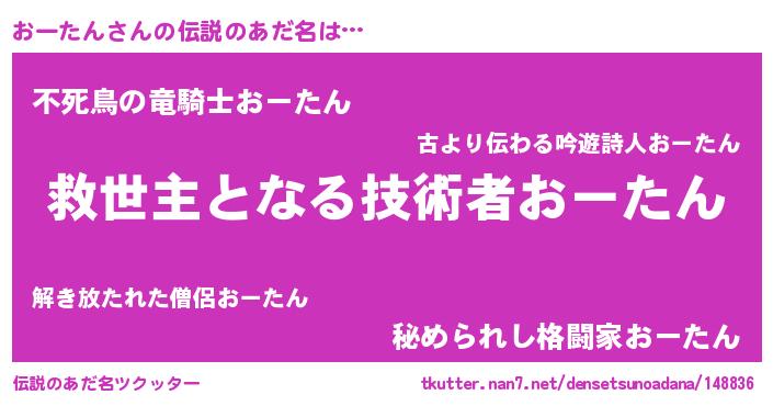 | ヒーロー風カッコイイあだ名 | 『慈愛の使者おーたん』『仮面オーダー』 |
