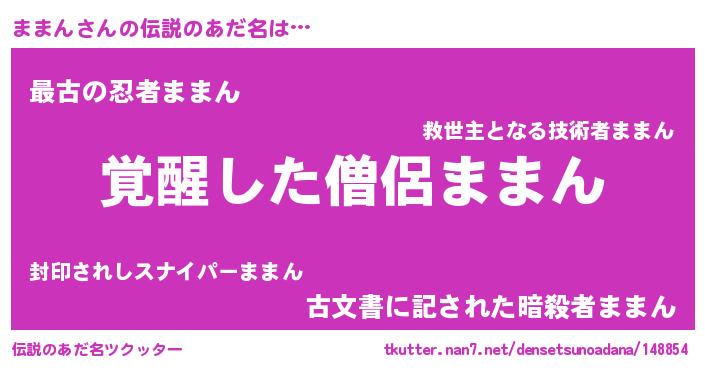 | 男性向けラノベタイトル風あだ名 | 『ままんの嫁は女の子じゃないと思った?』 |