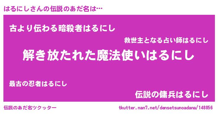 | ポケモン風あだ名 | 『ヒハルニシ』『ハルキング』 |