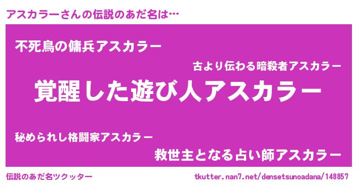 | 意味不明あだ名 | 『自称アスカラー』『ペロリンアスカラー』 |