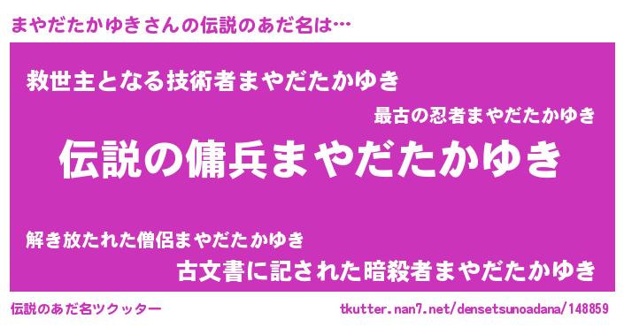 | 男性向けラノベタイトル風あだ名 | 『まやだたかゆきの憂鬱』 |