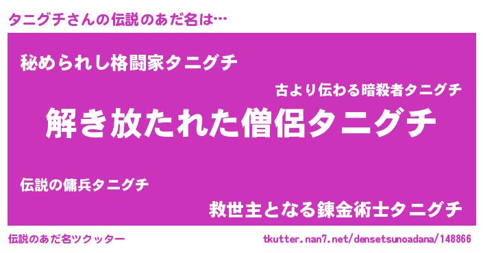 | 女子向けラノベタイトル風あだ名 | 『タニグチの卵を拾いまして』 |