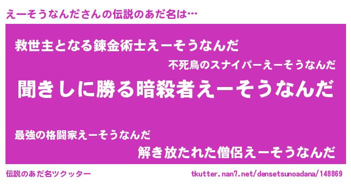 | 女子向けラノベタイトル風あだ名 | 『えーそうなんだが死なない童話 林檎のえーそうなんだの診療簿』 |