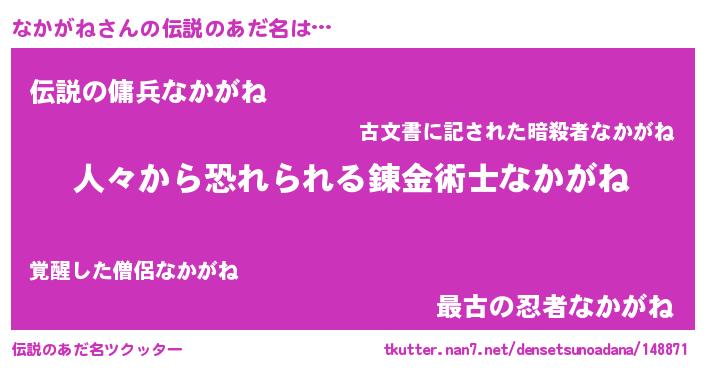 | ヒーロー風カッコイイあだ名 | 『友情の使者なかがね』『ネオナカガネ』 |
