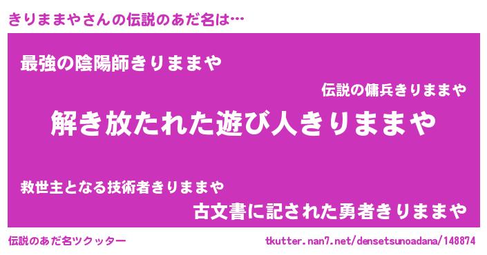 | ヒーロー風カッコイイあだ名 | 『魔戒騎士キリ』『究極戦士キリママヤ』 |
