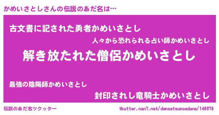 | 意味不明あだ名 | 『とにかく怪しいかめいさとし』 |