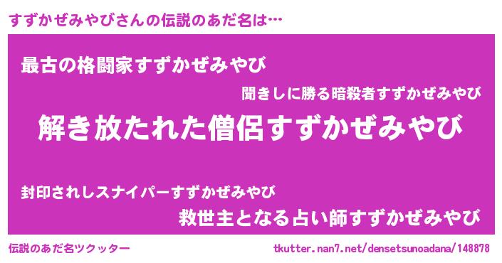 | 意味不明あだ名 | 『とにかく怪しいすずかぜみやび』 |