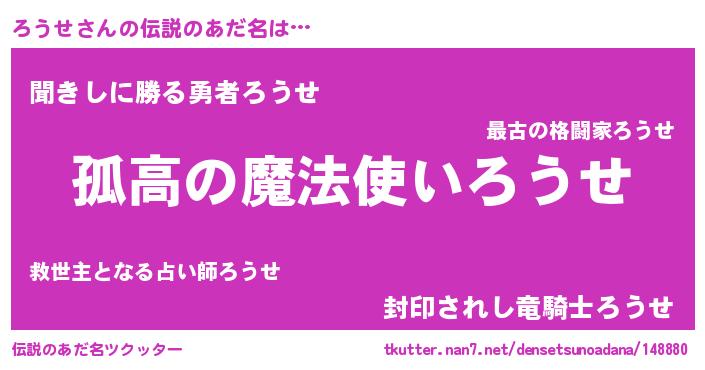 | 胡散臭い通販商品みたいなあだ名 | 『信頼と実績のサプリメント…その名も「ろうせ」』 |