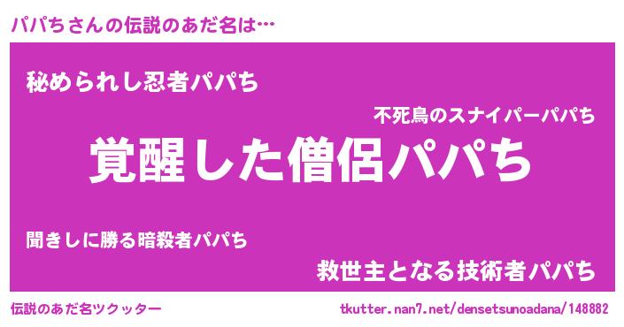 | 胡散臭い通販商品みたいなあだ名 | 『あなたにだけ特別に提供する限定10本のレアな日本酒…その名も「パパち」』 |
