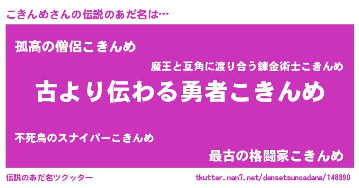 | 意味不明あだ名 | 『永久保存こきんめ』『自称こきんめ』 |