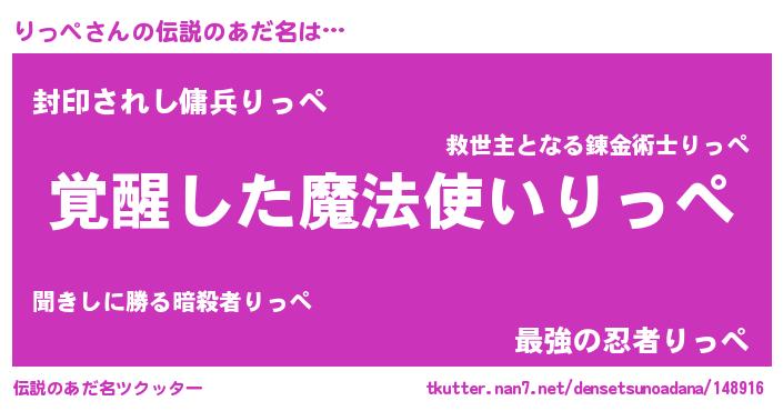 | 男性向けラノベタイトル風あだ名 | 『りっぺに滅ぼされるだけの簡単なお仕事です』 |