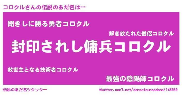 | 男性向けラノベタイトル風あだ名 | 『この素晴らしい世界にコロクルを!』 |