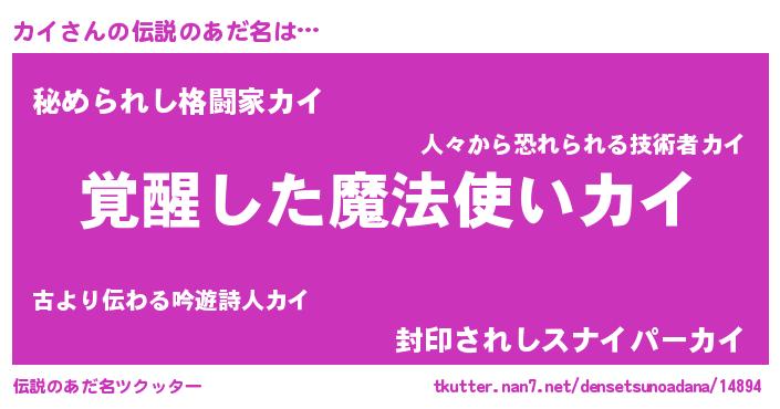 | ヒーロー風カッコイイあだ名 | 『幻影騎士カイ』『ウルトラカイマン』 |