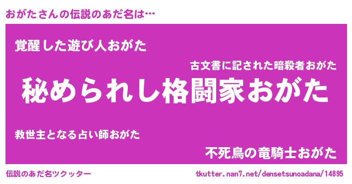 | ヒーロー風カッコイイあだ名 | 『ウルトラおがたマン』『究極戦士オガタ』 |