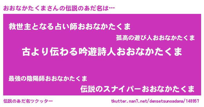 | 意味不明あだ名 | 『永久保存おおなかたくま』 |
