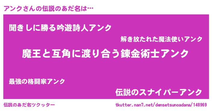 | ヘコむあだ名 | 『アンク(遠い目)』『アンにー』 |