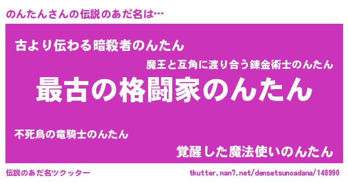 | ヒーロー風カッコイイあだ名 | 『仮面ノンダー』『ウルトラのんたんマン』 |