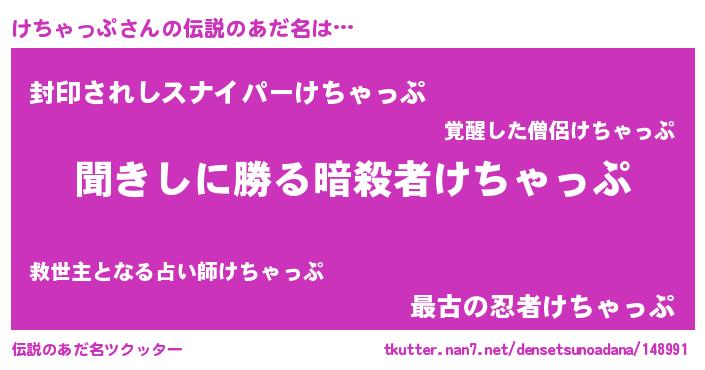 | ヘコむあだ名 | 『けちゃっぷ(爆)』『けちっふぃ~』 |