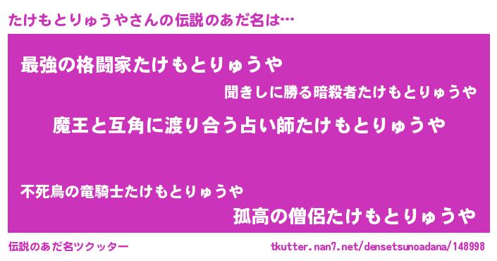 | 女子向けラノベタイトル風あだ名 | 『たけもとりゅうや恋絵巻』 |